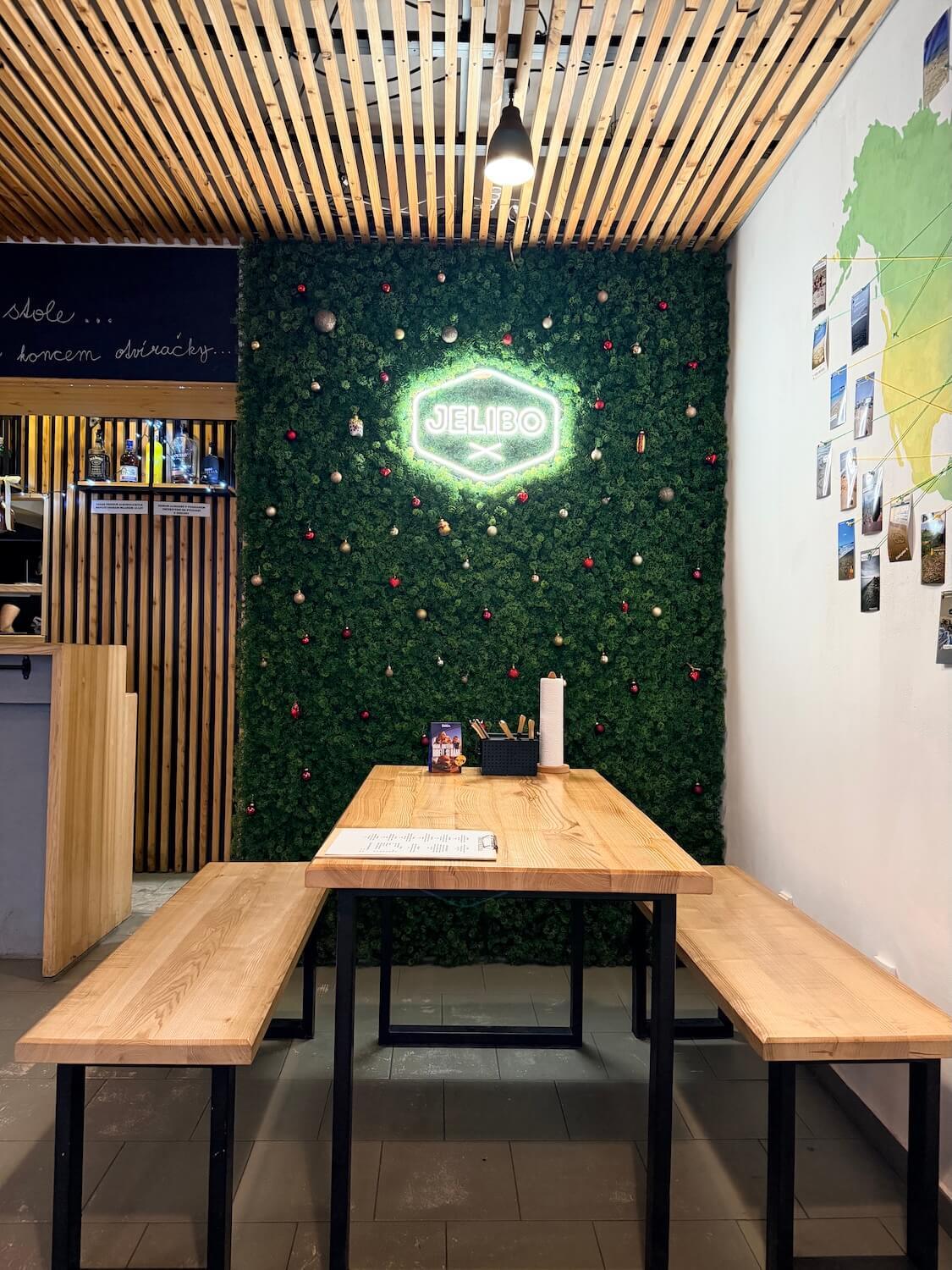 V bistru nečekejte nic fancy. Je opravdu malé, najdete tady 3 velké stoly pro cca 6 osob a 2 malé pro dvojičku.
